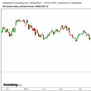 第一,美联储从2016年12月至今加息3次,但美元指数却是不断走贬,从年初的103.21一路贬至9月的91.35,下跌幅度高达11.49%。