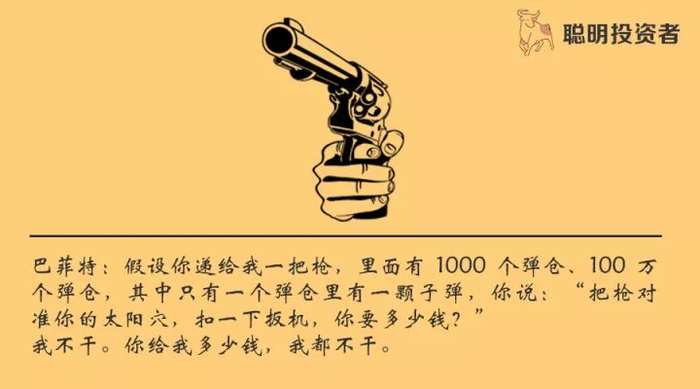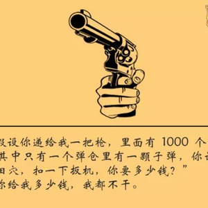 假设你递给我一把枪,里面有 1000 个弹仓、100 万个弹仓,其中只有一个弹仓里有一颗子弹,你说:“把枪对准你的太阳穴,扣一下扳机,你要多少钱?”我不干。你给我多少钱,我都不干。