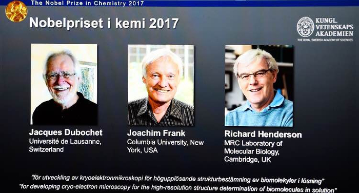 这三位诺贝尔奖获得者分别是来自美国的德裔生物物理学家、哥伦比亚大学教授约阿基姆-弗兰克(Joachim Frank);苏格兰分子生物学家和生物物理学家、英国人理查德-亨德森(Richard Henderson)以及瑞士洛桑大学生物物理学荣誉教授、瑞士人雅克-迪波什(Jacques Dubochet)。
