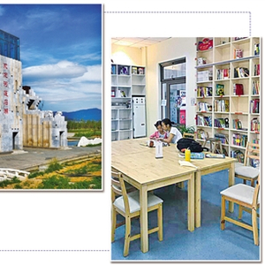 右图 一对母女,正在北京金中都公园内的宣阳驿站第二书房里,享受阅读的乐趣。 牛 瑾摄