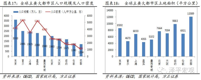 从人口规模看,上海以2415万人位居全球第三,居东京都市区3593万人、首尔都市区(2495万人)之后;北京都市区(1980万人)位居全球第六,中间还隔着孟买都市区(2280万人)、墨西哥城都市区(2040万人)。