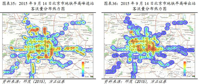 就业与居住的分离(简称“职住分离”)现象不可能完全消除,但职住分离度可以降低。职住分离是国内外许多大城市交通拥堵的一个重要原因,这一情况在北京、上海尤其严重。比如,基于北京市地铁早晚高峰进出站客流量分布数据,可以清晰地发现北京市的就业分布相对集中,而居住分布比较分散,且二者相距较远。北京市的就业中心主要集中在国贸周边区域、二环西段沿线地区、二环东段沿线地区等;居住中心主要有回龙观-霍营-育新地区、天通苑-东小口地区、宋家庄-蒲黄榆-刘家窑地区、十里河-潘家园-劲松-双井-国贸地区等。职住分离严重的一个重要原因是聚集大量人口的新城未布局足够的产业,“睡城效应”十分明显,比如北京回龙观-天通苑地区。
