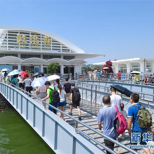 10月2日,游客从鼓浪屿轮渡码头进岛观光。 新华社记者 姜克红 摄