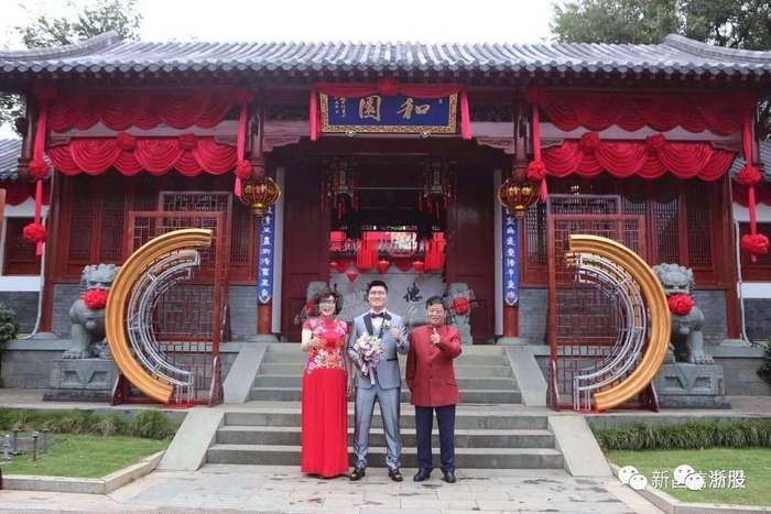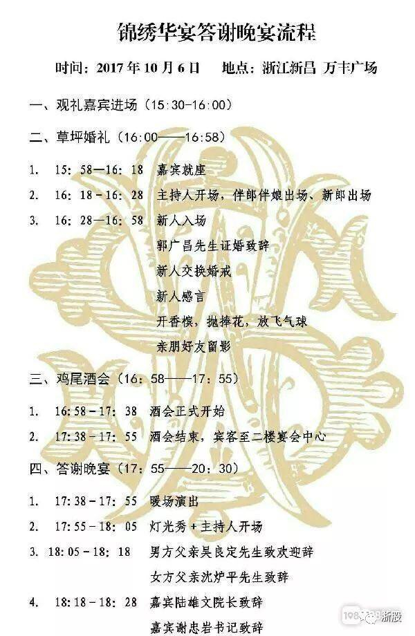 新郎官背后,站着的是新昌首富吴良定、陈爱莲夫妇。
