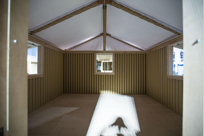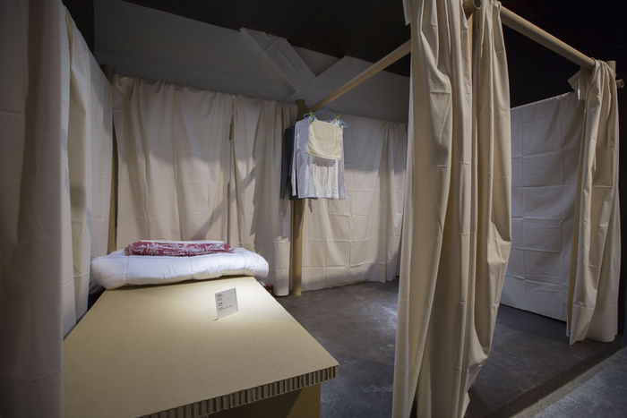 “神户纸管临时过渡安置建筑”成为坂茂成功设计的第一批救灾建筑。它们便宜又容易搭建,并且出人意料的舒适。展览现场复建了包括这一建筑在内的五件作品,人们可以踏着啤酒筐走入纸筒屋,亲自感受建筑师以专业智慧创造出来的“临时房屋”。