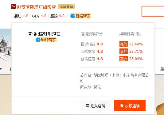 梦陇城堡(上海)电子商务有限公司在启信宝中,虽然没有直接显示赵薇持股。但以该公司注册的天猫商城名为“赵薇梦陇酒店旗舰店”,形象代表人也均是赵薇本人。