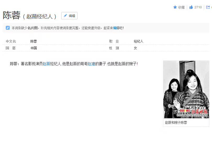 因为离婚事件的男方赵健,是国内知名演员赵薇的哥哥;而女方——赵薇的“前嫂子”陈蓉,则是伴随着赵薇从籍籍无名到大红大紫的经纪人。