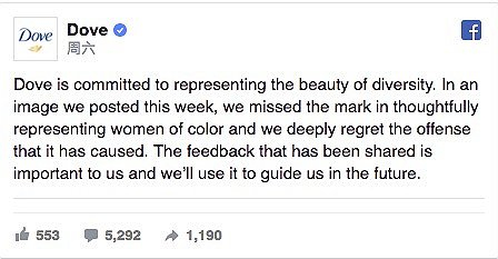 多芬在Facebook上的道歉