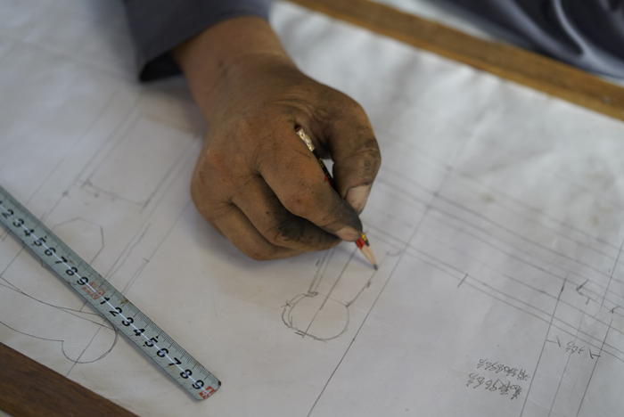 他对手艺执着而严苛,要求徒弟画墨线、挥斧子的手法必须标准,姿势要好看。“徒弟的举止,事关师父的声誉。”2010年他被评为国家级非物质文化遗产名录项目代表性传承人后,私心想要收个同姓的男徒传承手艺。他的独女在上海发展,无意继承父志,不过最佩服父亲,喜欢跟外国人交流,虽然语言不通,但很乐意接受新事物。