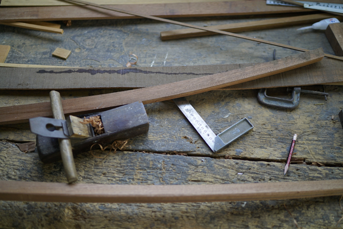 将硬直的木头强制弯曲,岑国和凭的是老法师的经验。不同于日本造舟用热水将木板烫软,舟山的传统工艺就是巧用桐油。“密度高的木头,里面浇点桐油并加热,用喷灯将热气往里面赶。外面板热了之后拉长,里面的就缩短了。”他掸了烟灰,继续比划。