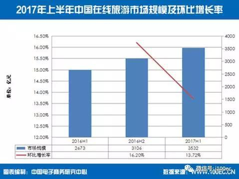 据中国电子商务研究中心(100EC.CN)发布《2017年(上)中国电子商务市场数据监测报告》(报告下载:www.100ec.cn/zt/17jcbg1)显示,2017年上半年中国在线旅游市场交易规模约3532亿元,在线旅游市场规模呈现平稳上升的良好趋势。