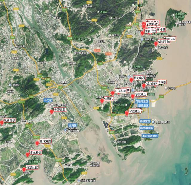 上图左上角分布于珠海市高新区附近的公司有英搏尔、世纪鼎利、全志科技、宝莱特、远光软件等。