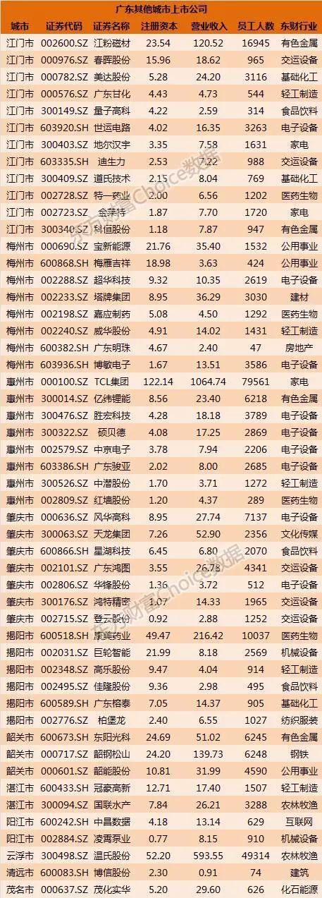 值得注意的是,广东省内,有18个地级市至少拥有一家上市公司,目前只有潮州、汕尾、河源三个城市还没有实现零突破。当然,这里没有统计在港股、美股等境外证券市场的上市情况。