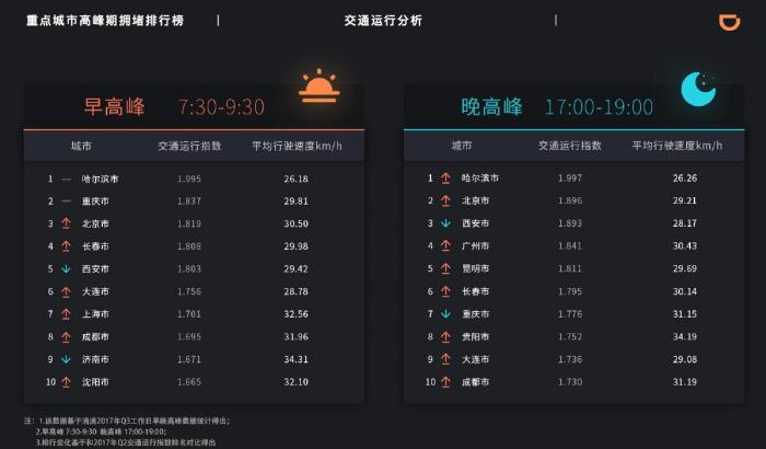 在早高峰和晚高峰拥堵排行上,哈尔滨也均位列第1名。