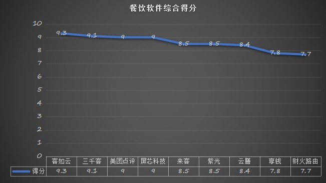 美团的外卖平台是根据收银系统品牌开通美团外卖的商户数量及交易额等维度来进行收银系统品牌评分的,因此评分高低具备实力依据。按照评分高低对比一下前三名的餐饮连锁管理品牌,就能够很直观的看出各品牌之间的不同: