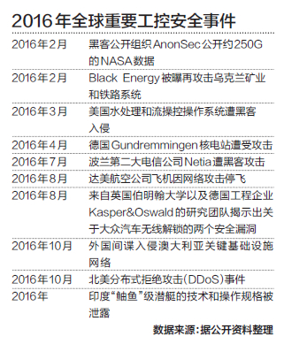2015年12月,黑客利用系统漏洞非法入侵了乌克兰的一家电力公司,远程控制了配电管理系统,导致7 台110kV与23 台35kV 变电站中断了三个小时,22.5万用户停电;2016年4月,德国核电站负责燃料装卸系统的Block B IT 网络同样遭到攻击,安全人员在对这套系统的安全检测中发现了远程控制木马,虽然还没有执行非法操作,但核电站的操作员为防不测,临时关闭了发电厂。