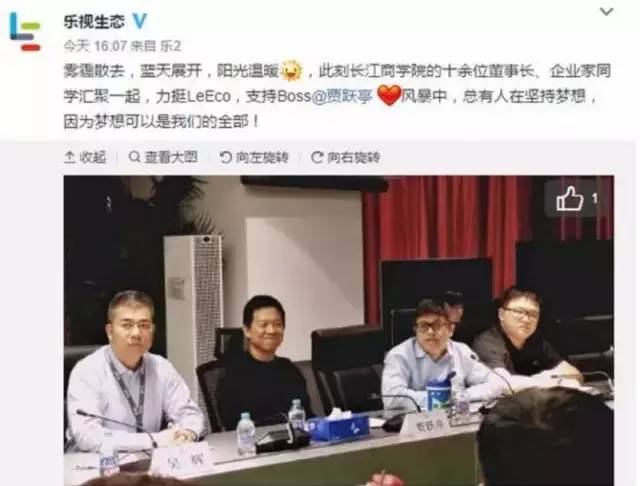 比如:乐视的贾跃亭在陷入资金链危机的时候,就有很多同学(恒兴集团、海澜集团、成信集团等的掌门人。)纷纷慷慨解囊,送去了6亿美金,让乐视度过了难关。