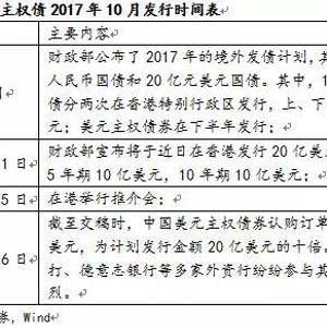其一,美元回流美国本土或进一步提速。美联储于10月份启动缩表,同时大概率于12月议席会议上进一步加息25bp至1.25-1.5%区间。另一方面,特朗普税改经18财年预算通过后预示“闯关”第一步完成,海外资产或加速回流美国。“缩表加息”配合“特朗普税改” 触发的美元走强趋势或让人民币币值后续承压,外储外流趋势上升,增加中资企业存量美元债的偿付压力,并抑制增量美元债的发行规模。其二,穆迪标普先后双双调降中国主权债信评级。穆迪和标普于今年5月和9月先后调降中国主权债信评级。其中,穆迪从Aa3降到了A1,这是自1989年以来首次降级;标普从AA-调低至A+。此举或将增加中资企业存量美元债的相对偿付压力,并抑制增量美元债的相对发行规模。其三,亚洲美元债市场蓬勃发展占全球总发行额近半,其中中资占比从09年不到2%,至16年超6成遥遥领先第二名占比1成的韩国且增势迅猛,增量美元债的发行需求仍远未饱和。其四,目前美元中国主权债品种单一,在本次发行前仅剩30年期及100年期各1亿美元规模,二级市场交易高度不活跃,定价“锚”作用失准严重。其五,中国持续多年国际收支庞大的双顺差以及外储扩大的趋向在近几年有所钝化,国际收支失衡压力得到缓解,资本净流入转向净流出。