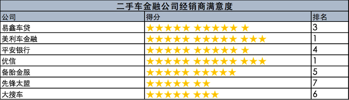 10月27日,汽车金融研究院发布《中国二手车金融经销商满意度报告》,调查显示,运营效率、客情关系已成为二手车金融公司获得经销商信赖的关键所在,优信二手车、美利车金融、易鑫车贷斩获经销商满意度前三甲。
