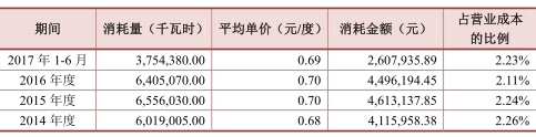 子公司天浩数码由于在 2017 年 1-6 月试生产期间进行了较多的设备调试等,耗用了较多的电力,且由于未完全达产,单位耗电量也较大。