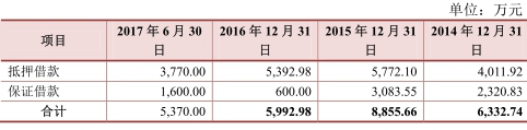 截至 2017 年 6月 30 日,公司的抵押借款余额为 3,770.00 万元,由公司以房产和土地使用权等设置抵押。