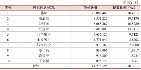 天地数码发行前股本为 4,893.80 万股,本次拟公开发行 1,631.2667 万股,占发行后总股本的比例为 25%。天地数码共有 38 名股东,其中 34 名自然人股东,另外 4 名机构股东升华集团、金投智汇、钱江创投、杭州冠硕均非国有股东。