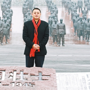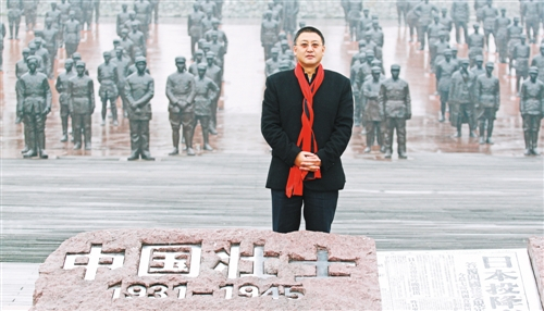 樊建川站在建川博物馆中国壮士群雕广场。 (资料图片)