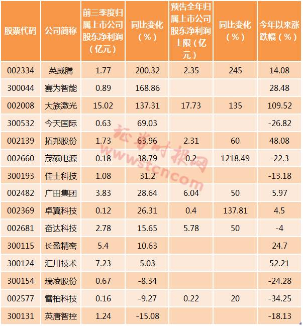 从A股市场来看,通达信软件显示,深圳有15只机器人概念股。从前三季度盈利表现来看,有12股前三季度归属上市公司股东净利润同比增长,英威腾、赛为智能、大族激光等涨幅居前,瑞凌股份、雷柏科技和英唐智控同比出现下滑。与此同时,英威腾、大族激光、拓邦股份等8股发布了全年业绩预告。