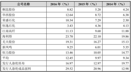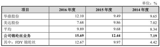 公司称,受到行业因素的影响,2014 年-2016 年,公司和可比公司的锦纶丝业务的毛利率均出现一定的波动。公司的锦纶长丝的毛利率波动趋势与行业平均水平一致,均呈现逐年上升的趋势,且公司和可比公司 2016 年毛利率较 2014 年均有一定增长。