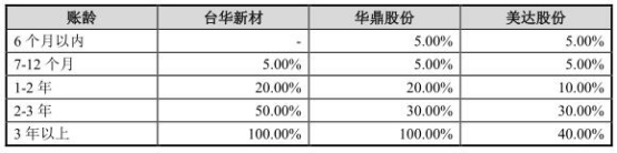 2014 年-2016 年,可比公司华鼎股份应收账款余额分别为26,823.74万元、19,712.79万元、33,560.75万元。美达股份应收账款余额分别为10,502.06万元、9,091.80万元、12,288.65万元。2014 年-2016 年,坏账准备计提比例均高于同行业可比公司,公司应收账款计提较为谨慎。