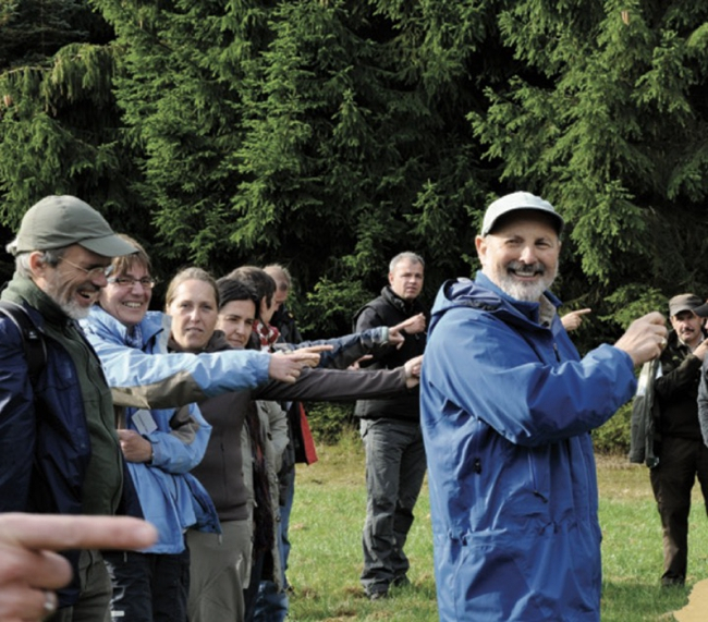 “想象力、好奇心、直觉和尝试新事物的勇气,都是孩子的特点。成年人同样需要这些宝贵的特质,但是如果人在幼年时没有机会发展这些品质,长大后就不会成为具备优良品质的人。”克奈尔共享自然的方法和理念并非只针对儿童,他设计了适用于不同年龄段人群的自然游戏,让成年人也能通过游戏感知自然、体验自然,通过分享自然唤醒童心,重新开启他们的专注、创造力和想象力。