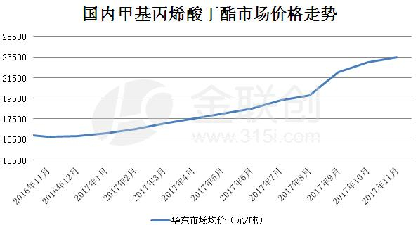 由于近期国内甲基丙烯酸丁酯市场主要原材料甲基丙烯酸甲酯产品市场价格延续高位,且国内甲基丙烯酸甲酯整体供应面延续偏紧。因此近期国内甲基丙烯酸丁酯生产采购方面压力越发增大,而且随着原材料甲基丙烯酸甲酯供应量的紧张,更是加大了采购成本。目前国内甲基丙烯酸甲酯整体市场价格延续高位整理运行走势,华东地区主流成交价格在22000元/吨附近,实单成交低端报盘价格难觅。受此影响目前我国国内甲基丙烯酸丁酯市场整体成本压力越发增大。