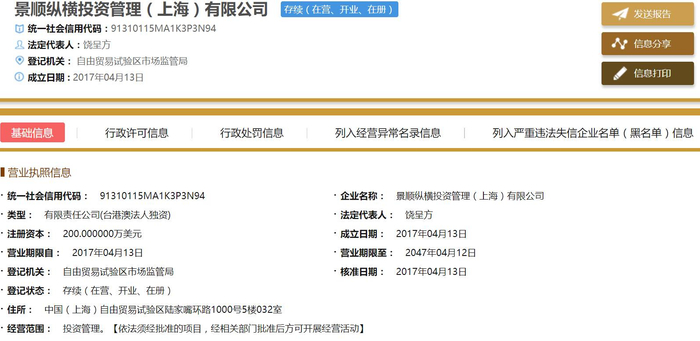 景顺纵横投管理(上海)有限公司背后股东方则是景顺投资。工商登记资料显示,景顺纵横成立于2017年4月13日,法定代表人为饶呈方,注册资本200万美元,景顺投资管理有限公司为股东方。主要成员有Jeremy charles simpson、孙海峰、李小咪、饶呈方、郭慧娜。