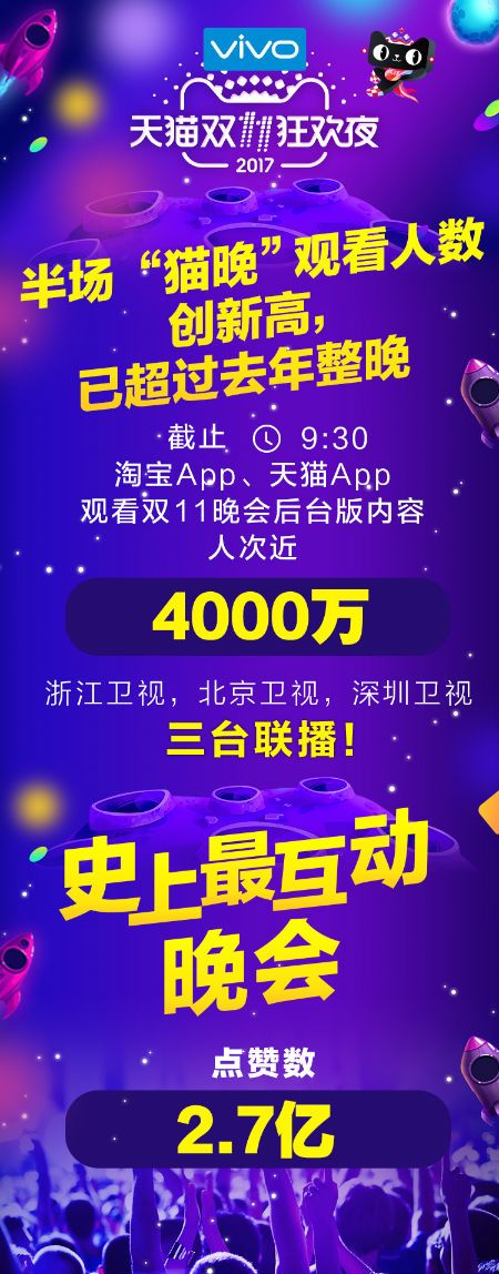 2小时吸引4000万观众 天猫“双11”晚会为剁手狂欢造势