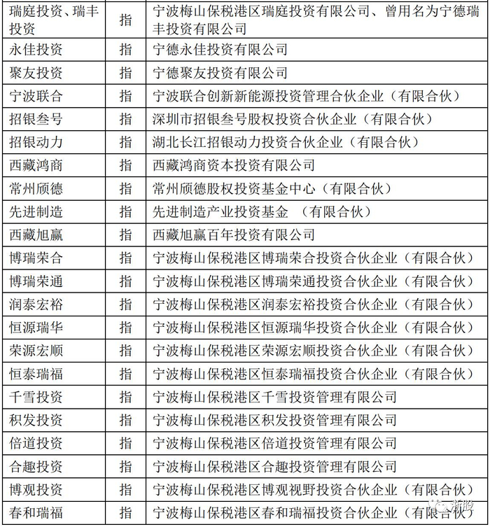 在突击入股宁德时代的数十家股东中,既有大批国字号公司和基金,也有许多民间资本(大部分注册在宁波梅山保税港区),其中关联的上市公司,就有10多家。