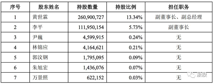 公司副董事长、副总经理黄世霖直接持有公司13.34%的股份。