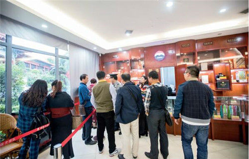在茅台镇中国酒文化城的游客服务中心内,经常可以看到排队购买名酒的游客。视觉中国