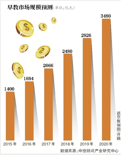 大力进军学前教育产业,跟目前学前教育市场的蓬勃发展有关。秀强股份2016年年报透露,目前中国婴幼儿有1.08亿,其中0-3岁婴幼儿保守估计有7000万,2020年中国婴幼儿数量将达2.61亿左右。