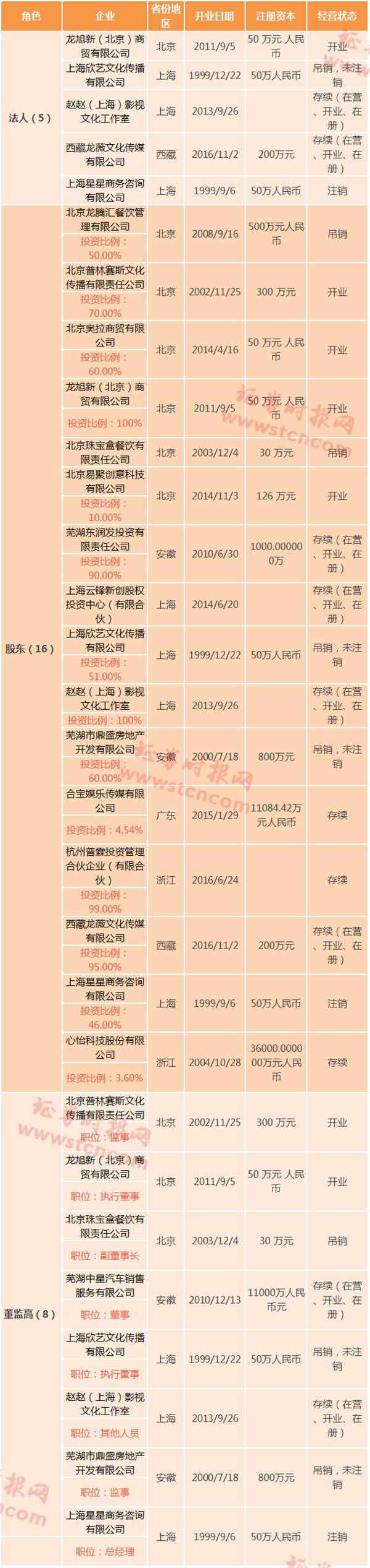 据祥源文化1月12日发布的对上交所问询的回函显示,龙薇传媒实际控制人赵薇及其配偶黄有龙投资金宝宝控股、顺龙控股、阿里影业、云峰金融、唐德影视等多家上市公司股权,其中4家为港股上市公司。