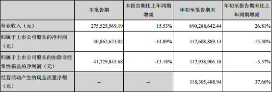 三季度净利润下滑14.89%