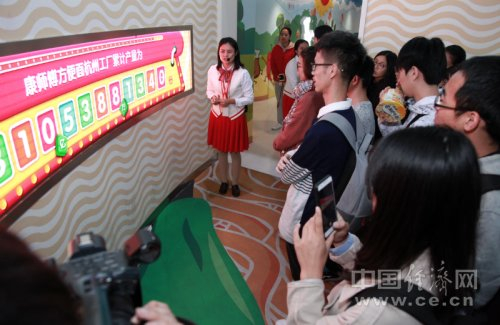 带着大白帽子的小厨师形象随着康师傅方便面走进了千家万户,可是很少有人知道这位小厨师的名字叫做“康宝宝”。参观活动结束后,在被问及康宝宝的梦想是什么的时候,几位同学争先恐后地回答:“是环保,创新,健康,安全!”“这是康宝宝的梦想,同时也是我们‘食品人’的梦想,”一位来自杭州师范大学“求真务食”社团的同学对记者表示,“关注食品安全和健康人生就是我们这行从业者的‘使命’,今天来参观工厂可以说不虚此行了!”旁边的同学们也忍不住插嘴表示“受益匪浅”、“涨姿势!”
