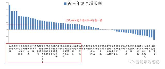 沿着资本开支在行业之间的转移方向,我们选择了近三年资本支出复合增长率在14%以上的行业,这意味着这些行业的资本规模平均每5年翻一番。