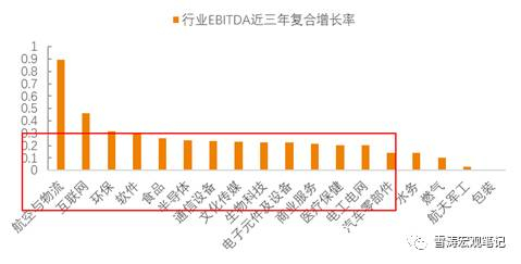 基于此,我们用企业折旧、摊销和利息前的利润(EBITDA)衡量企业的盈利能力,对高资本开支(CAPEX)行业的EBITDA复合增长率进行排序,筛选出复合增长率大于14%的行业。