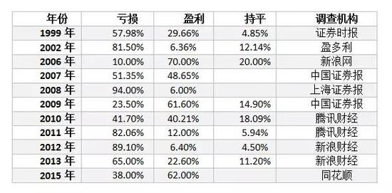 据2016年同花顺投资账本显示,盈利的股民占26.8%,人均赚44935元,收益率为28.9%;亏损股民比例高达73.2%,亏损股民人均亏损50345元,收益率为-21.5%。稍稍统计下过去的投资者盈亏情况,都没逃脱七亏二平一赚的铁律。基民也是同病相邻,京东金融前日做了调查,去年仅34.3%的基民实现了正收益。