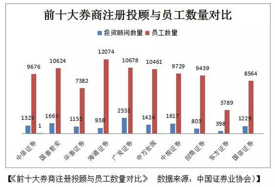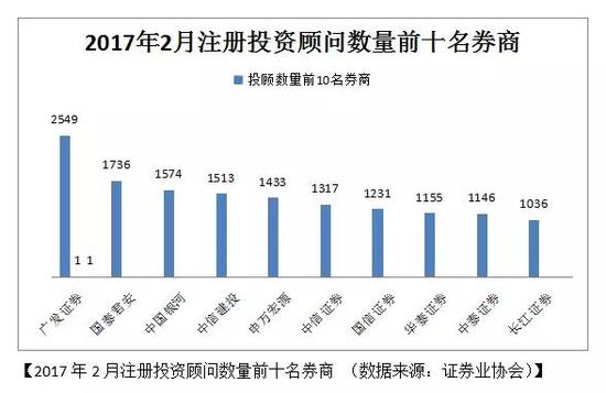 即便在注册投资顾问里面,从事专业投资顾问工作的人数也不多。截至2017年2月,注册投资顾问占证券公司员工总数仅11%,但估算有至少三分之一注册投资顾问实际上不从事或不直接从事客户服务等投资顾问工作,而在后台岗位、柜台、财务电脑、管理等岗位上。