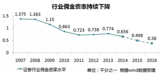 应该说,如果证券经纪业务能够稳定在当前的佣金费率,还是非常有利可图的。但是坏消息是,经纪业务的佣金水平仍然呈现出持续的下滑的态势,而且速度也没有减慢的迹象。