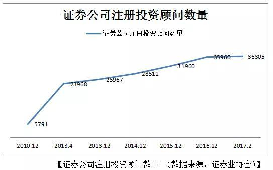 证券从业人员人数猛增的同时,投资顾问数量却增长缓慢