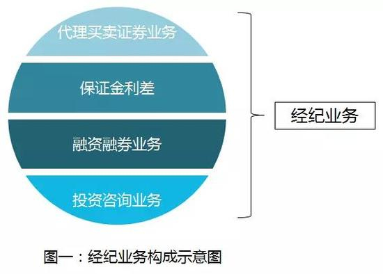 根据经纪业务的概念,证券公司的通道业务(包含股票交易手续费收入、客户证券保证金利差收入)可以清晰的归到经纪范畴。目前国内券商经纪业务中的证券金融业务,由于它提供的基本上都是与股票买卖相关的融资融券业务,跟投资者的财务规划相去甚远,所以也可以归入经纪业务。另外券商提供的投资咨询等业务,也属于股票交易业务的附属服务,也可以归入经纪业务。(图一示例)