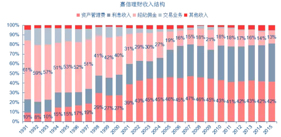 作为折扣券商的标杆,美国嘉信理财生于低佣,却勇于自身重塑。嘉信成立之初的三大原则就包含不提供咨询服务,结果导致多年辛苦培育的大量高端客户纷纷离开嘉信,寻求那些提供全价咨询服务的综合券商。嘉信正视发现的问题,抛弃自身成见,开始更多关注客户资产的保值增值,重视单客户价值量。嘉信近年来主要收入由佣金逐步转为管理费及利息。从单纯的关注用户数量,转而更加关注户均资产的保值增长。