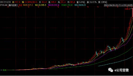 腾讯控股上市以来月K线走势图